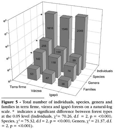 had intermediate levels of tree species diversity. Igapó was the most species-poor of all forest types.