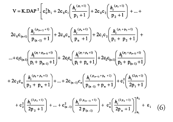 O volume total ou de qualquer porção da árvore (sortimento) é obtido pela resolução da integral do polinômio (5), ficando a expressão da seguinte forma: