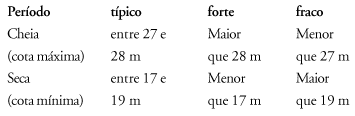 Desta forma, para áreas do rio Solimões-Amazonas nas proximidades do município de Manaus, os períodos hidrológicos foram identificados, a partir dos valores obtidos no porto de Manaus, da seguinte forma: