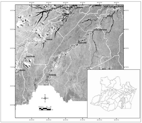 O estudo abrangeu a região do Médio rio Madeira e teve como área focal o município de Manicoré, localizado na porção sudeste do Estado do Amazonas (Figura 1) que é um dos maiores municípios dessa região em termos populacionais e territoriais (IBGE, 2001). Uma descrição mais detalhada dos ambientes de pesca e das principais espécies explotadas na área de estudo pode ser encontrada em Cardoso (2005).