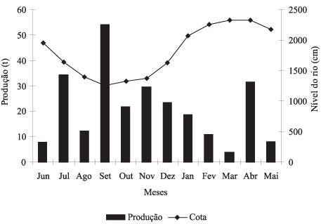 Vale ressaltar que foi nesse período (enchente e cheia), que as capturas provenientes dos lagos superaram a dos outros ambientes, provavelmente isso tenha ocorrido devido a pouca freqüência de cardumes nos rios, e também em decorrência do defeso, imposto pelo órgão de regulamentação, que não permite a captura de várias espécies e a utilização de determinados rios para a pesca comercial (Vicentini, 2005).