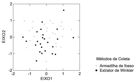 Um ponto de partida para a redução do esforço de coleta, triagem e identificação, seria analisar a possibilidade do uso de apenas um método de coleta. As armadilhas de fosso foram mais eficientes, produtivas e consistentes que o extrator de Winkler em sistema de savana para a coleta de formigas epigêicas (Parr e Chown, 2001). Por outro lado, o extrator de Winkler tem sido recomendado para áreas de floresta com maior camada de serapilheira e tem sido muito usado por diversos autores no Brasil (Majer et al., 1997; Delabie et al., 2000a; Vasconcelos e Delabie, 2000; Silva e Silvestre, 2004).
