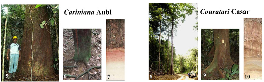 No inventário taxonômico do presente estudo constatamos que das oito espécies citadas na literatura como ocorrentes no Pará, somente seis, Cariniana decandra, Cariniana micrantha, Couratari guianensis, Couratari oblongifolia, Couratari stellata e Couratari tauari foram encontradas e estão sendo exploradas nas áreas dos pólos madeireiros central e leste do Estado (Tab. 1). As duas espécies, Allantoma lineata e Couratari tenuicarpa, não foram amostradas provavelmente por habitarem margens de rios, áreas onde o corte é proibido segundo as normas do manejo florestal de baixo impacto (MMA, 2002).