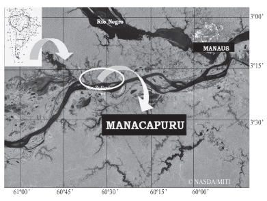 O município de Manacapuru, localizado a 68 km de Manaus e a 60 m acima do nível do mar (Figura 1), apresenta um total de 73.695 habitantes (IBGE, 2001) distribuídos em uma área total de 7.367,9 km2. A sede municipal é a cidade de Manacapuru com 47.662 habitantes, em cuja zona portuária está situada uma balsa destinada ao desembarque do pescado, o qual também é desembarcado no porto da Panairzinha e em dois frigoríficos.
