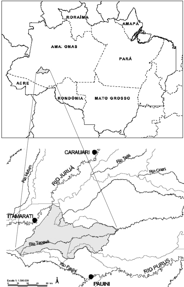 Figura 1 - Localização da Reserva Indígena Deni na Bacia Amazônica.
