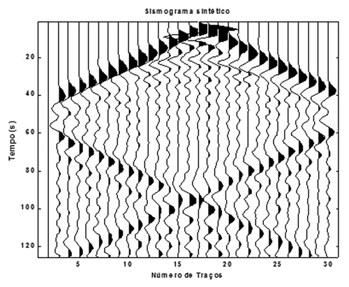 Para melhor visualização e representação dos eventos e também pelo fato das reflexões terem amplitudes maiores que as difrações, estas não se destacam muito no sismograma, então, foi necessário à aplicação de um Controle de Ganho Automático (AGC).