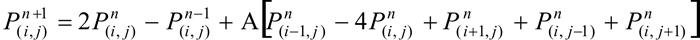 Com a equação (2), é calculado o valor do campo de pressão para um tempo t = (n + 1)Δt, conhecendo os campos em nΔt e em (n-1)Δt.