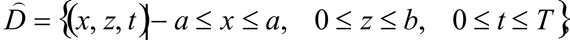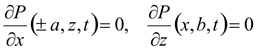 Com as condições de fronteiras (12) e (13) são observadas as reflexões dos lados x(+a), e do fundo (z=b) do modelo. O objetivo é buscar novas condições de tal forma que as reflexões das ondas incidentes sejam atenuadas, assim, baseado na análise do coeficiente de reflexão bem como em experimentos numéricos, é recomendado resolver os seguintes problemas para reduzir as reflexões de bordas, equação 14.